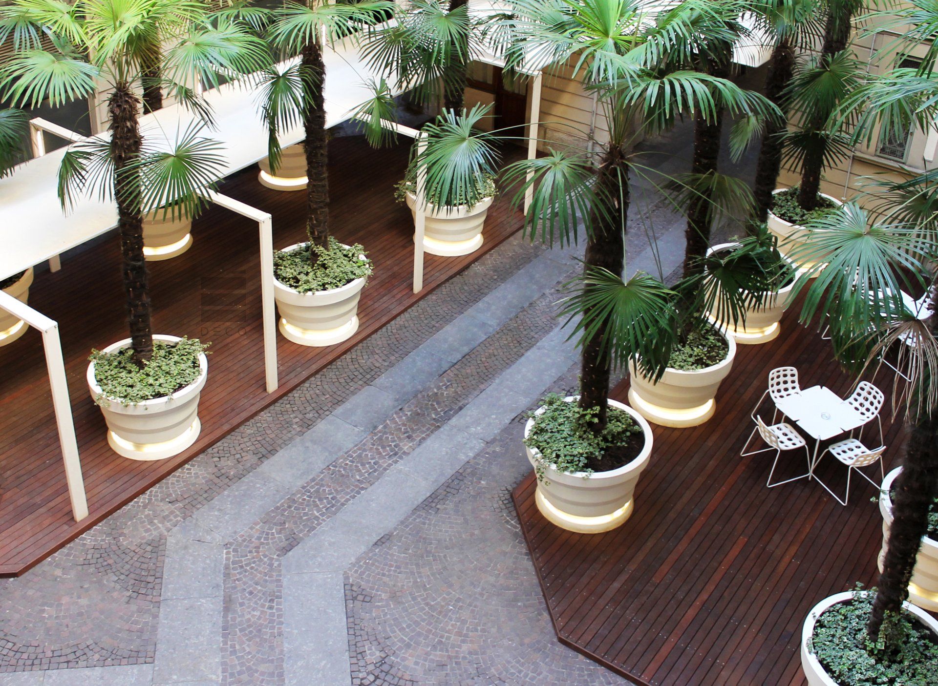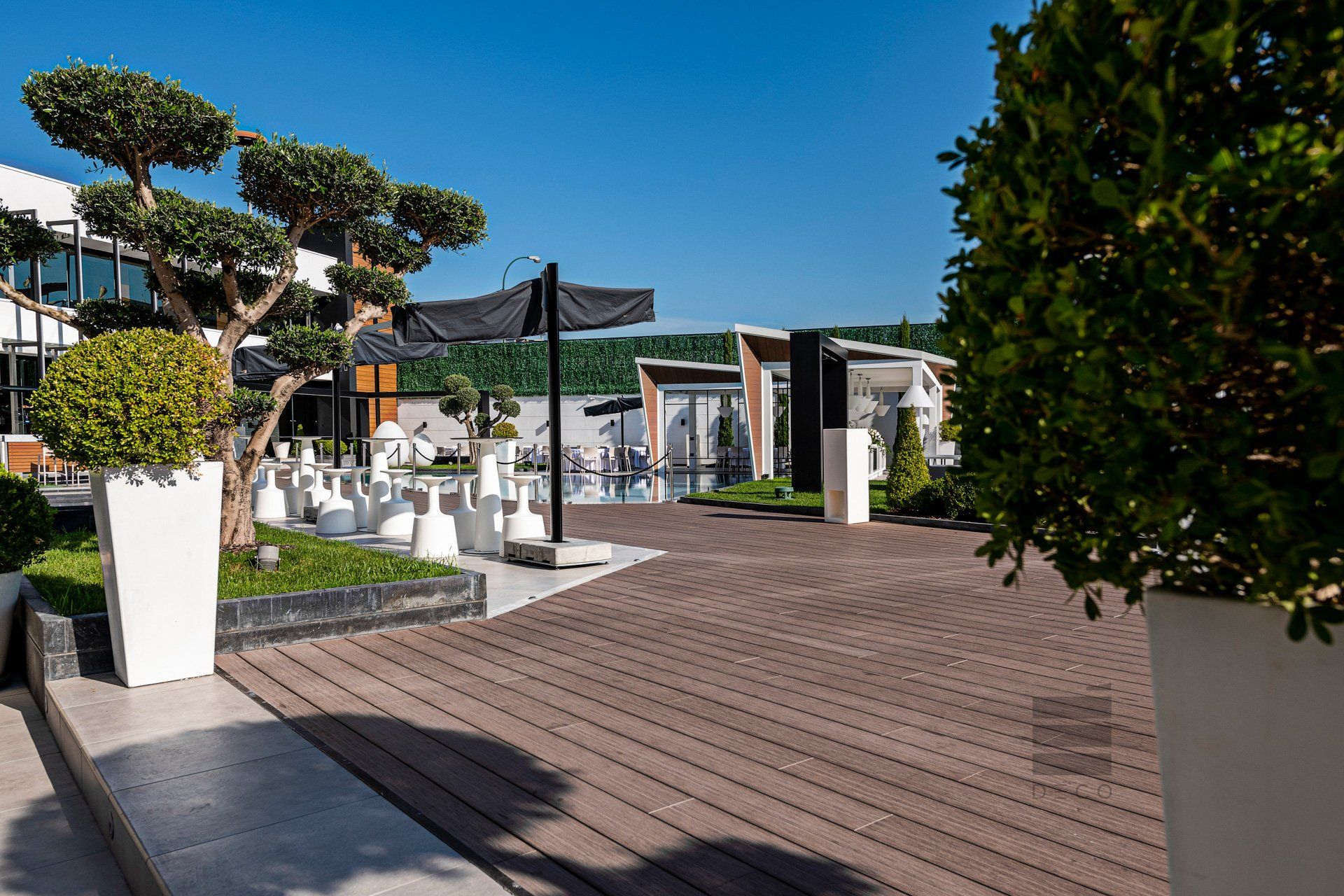 Stabilità, resistenza e design. Sono questi i valori che Déco incarna per valorizzare la progettazione di alta qualità. Materiali estremamente resistenti alle intemperie e all’usura del tempo permettono di portare all’aria aperta tutta la classe e il calore del parquet domestico.