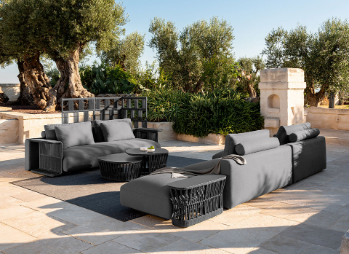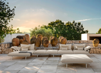 Zone living da esterno che sono salotti sul mondo, tavoli e sedute che ispirano relax e comfort, accessori che sono pensati per vivere lo spazio in modo completo e funzionale.